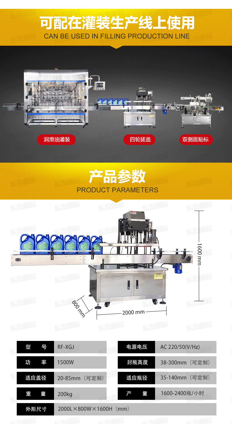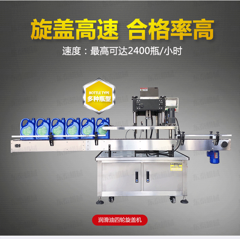機油自動搓蓋機電氣控制運動,穩(wěn)定性強; 設有定位裝置,旋蓋標準,操作方便; 鎖蓋范圍寬,可鎖不同形狀規(guī)格的瓶蓋;解決了噴頭、泵頭、噴霧泵、手扣式噴頭旋蓋難的